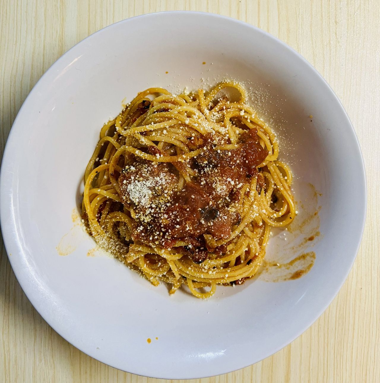 はい、大失敗です。唐辛子多すぎる、焦げる。まあ、まずいってわけではなかったですが悔しい。しかし、ダシを入れた味は感じることができました。記憶にあるアラビア―タというとトマトの酸味が出ていて味に、なんというか「間」を感じてそんなに好きでも嫌いでもないパスタであったんです。今回は、だしがその「間」を埋めてくれていてとてもマイルドに感じました。唐辛子の量と焦げがなければとてもおいしく食べられたと思います。