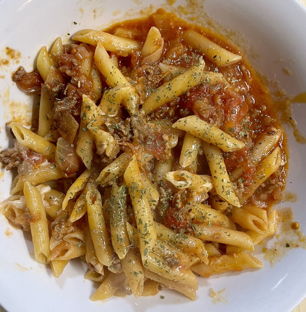 美味しかったです。ちょっと塩味がたりないなと感じたのでちょい振り。これで自分の口にはベストとなりました。この辺りは個人差でしょう。フライパンひとつでできるのがほんと助かります。今回はホールトマトで作ったのですが、カットトマトでも作ってみようかなと。あとペンネって軽く食べられますね。ソースもよく絡みますし。いろんなものの値段が上がっている現状、少ない材料でなるべくおいしくいただける、これ大事ですよね。