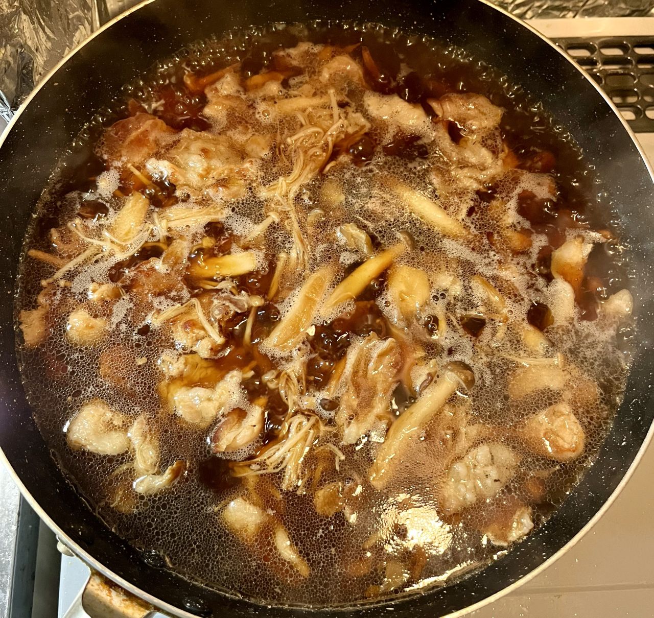炒めているところです。茶色、茶色、茶色・・・。香ばしい香りも漂ってきます。