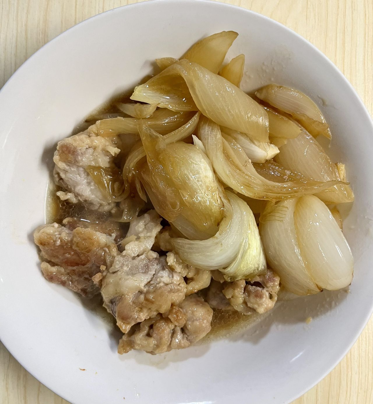 新玉ねぎの美味しさが引き出されてとても美味しい!トロトロになっておりました。豚小間も成型はあんまりうまくいきませんでしたが味はバッチリ。しつこさもなくすっきりとして柔らかく仕上がりました。新玉ねぎ丸ごと1個食べたのって初めてかもしれません。食物繊維も多いので体調管理にもピッタリ。お腹m持たれることもなく(歳がね・・・)しっかり全部いただきました。惜しむらくは、やはり玉ねぎが崩れてしまったことですかね。う~んちゃんと根元の方からカットしたと思うんだけどなあ。