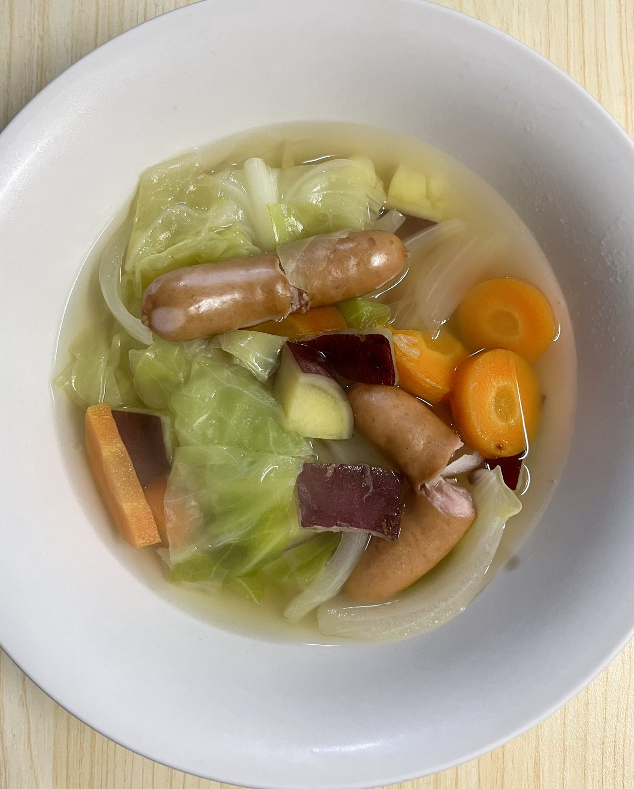 暖まりました!体調良くなかったのでこのような料理には癒されます。たしかこの時はご飯も食べずにこれだけ頂きました。いつもはコンソメと塩だけで味を調えていたんですけれど、白出しが多めに入っているレシピなので、味が丸く角が取れたスープだったように思います。コンソメと白出しあいますね。それからジャガイモの代わりにさつまいも入れたのもよかったなと自画自賛しております。ほっとする甘みが感じられましt。ポトフは野菜もたくさん撮れるし、ソーセージやほかの肉でも合いますから簡単に変化がつけられるのがうれしいポイント。冬にはもってこいの料理です。生クリームでもかけたらどうかな??なんて。